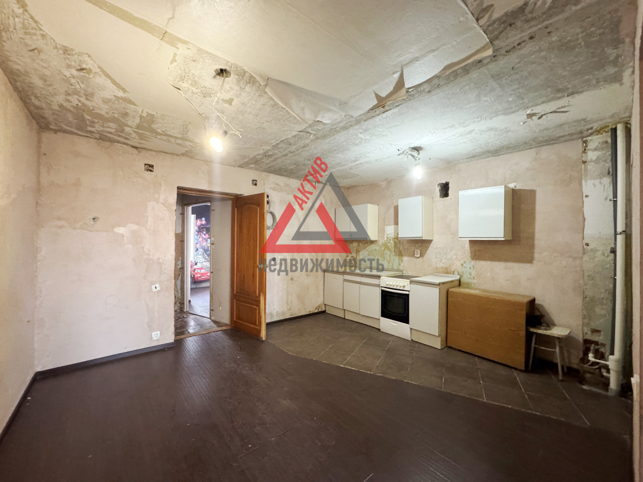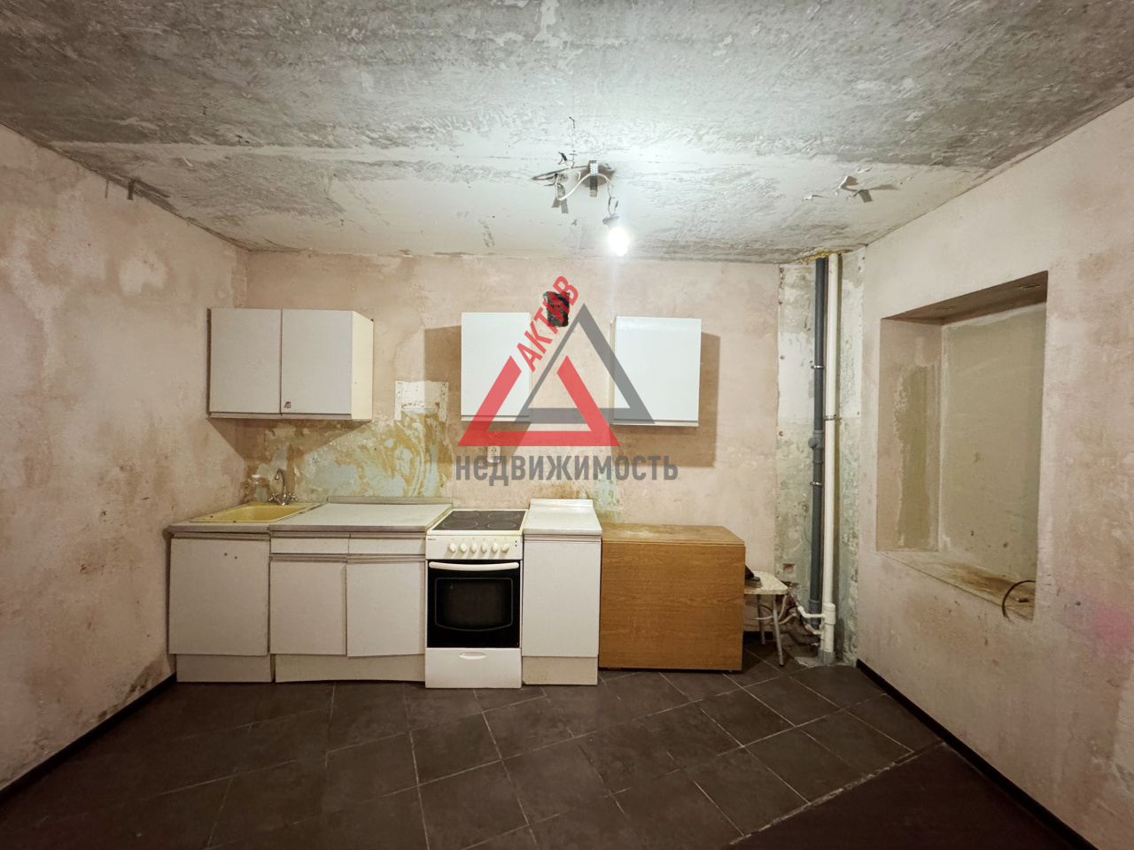 Санузел совмещен в кафеле. Счетчики на свет и воду. Сейф-дверь. Вам осталось только воплотить свои дизайнерские идеи.