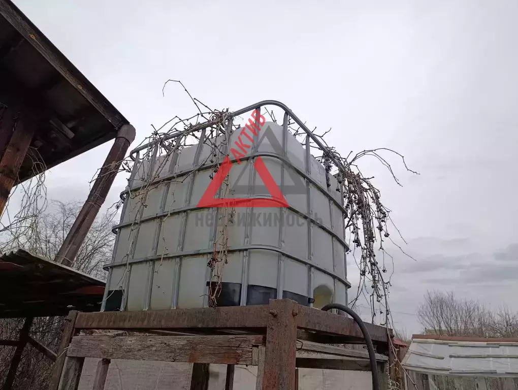 Для запаса воды - бак в 1000 литров, еще 3 крепкие бочки впридачу. Засуха не страшна. Да еще бонус - колодец рядом с участком.
